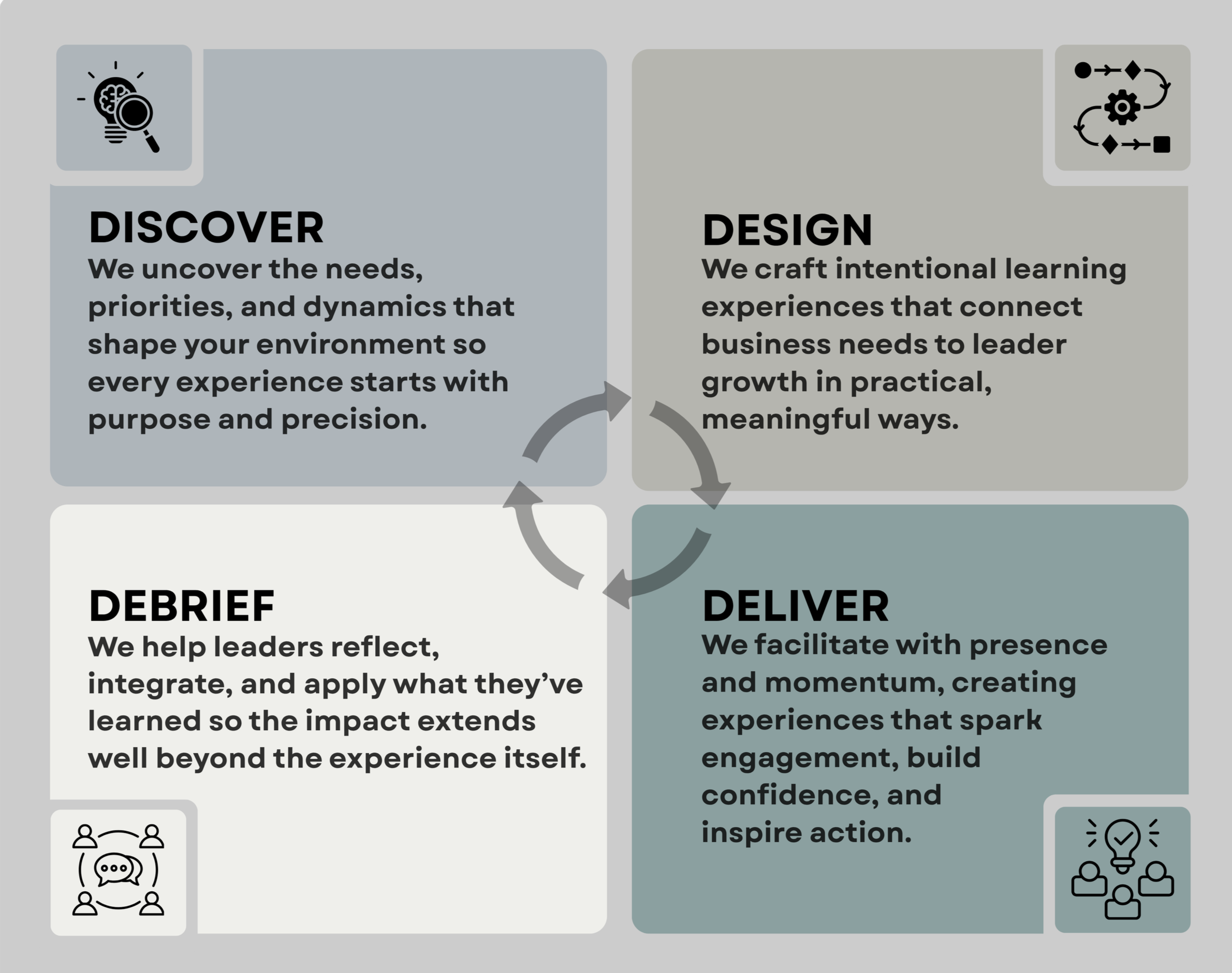 We partner with organizations to design leadership experiences that strengthen alignment, build capability, and move strategy into action. Grounded in partnership and real-world application, our work helps leaders and teams navigate complexity with greater clarity, confidence, and connection.